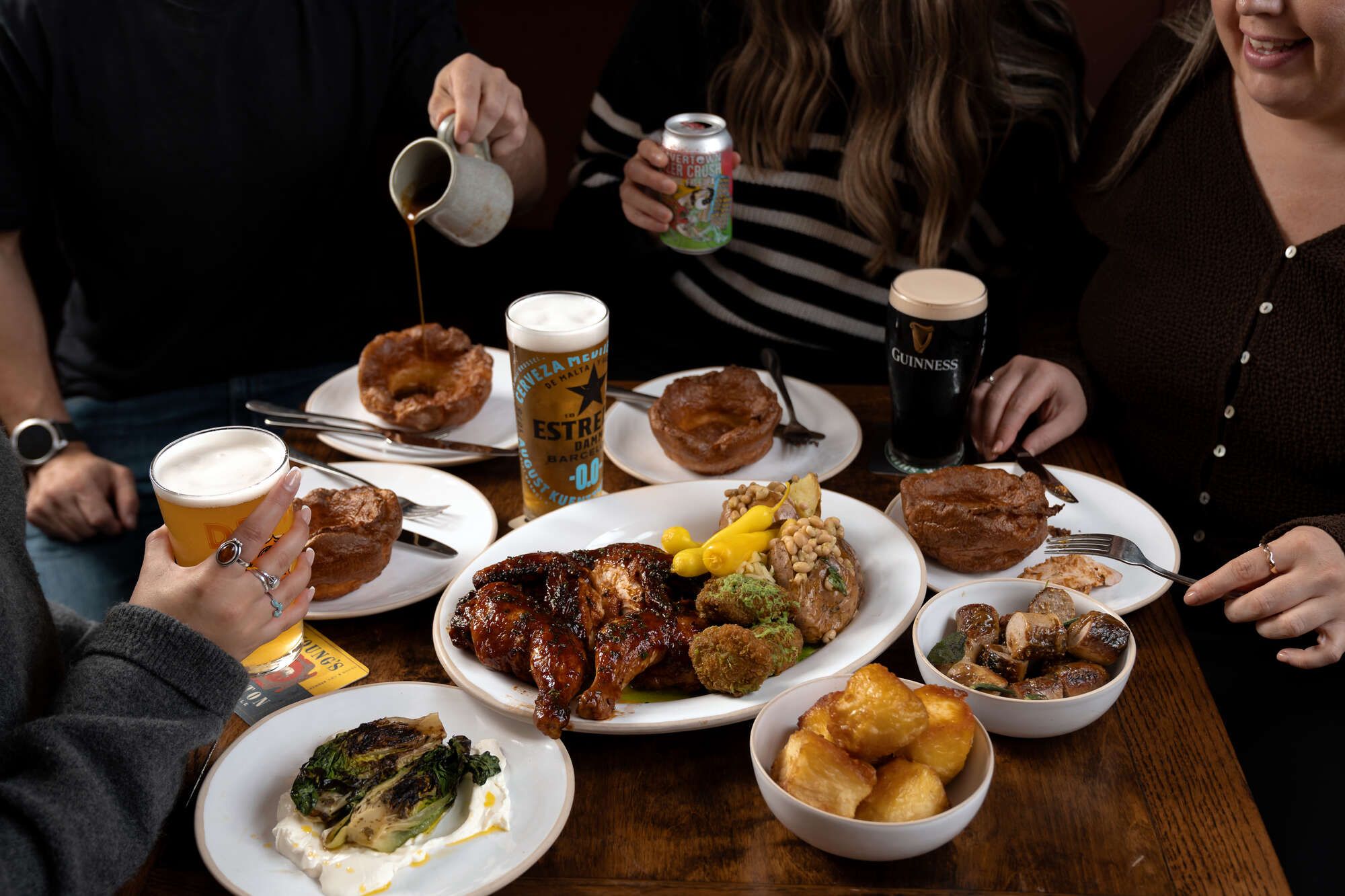 Plates arrive at your table, groaning under the weight of your fave centre-of-plate star, plus crispy roasties, butter-glossed veg, and Yorkie puds the size of your head (you know the ones).